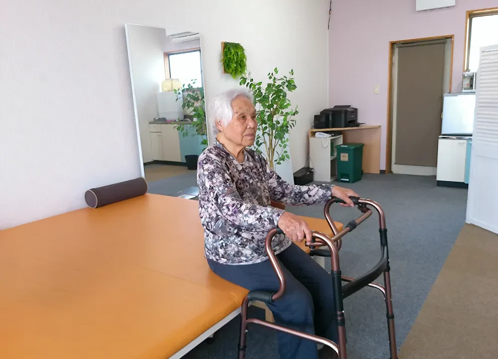 ラクナ梗塞の影響や80代後半という年齢もあり、一時は筋力や移動能力が大きく低下していたN様。当センターへ来られた当初は、ピックアップウォーカー(歩行器)を頼りに施設で過ごされている状態でした。ご家族の「自室やトイレでの移動を安定させたい」「外の刺激を受けて元気になってほしい」という切実な願いを受け、身体訓練だけでなく、外出によるポジティブな刺激を重視したプログラムを組み立てました。
